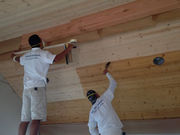 Whether for wrought iron, wood, aluminum or other metals, there are particular techniques for painting different surfaces. The process of painting wood and metals such as railings, columns, roof vents and decorative pieces like outdoor lamps is similar to each other, which means the most important first step is preparation. Most metals and woods are glossy and need pre-treatment in order for paint to stick to surfaces.